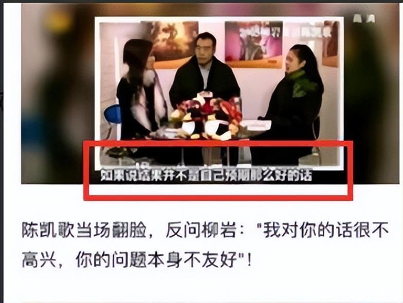 彼时,陈凯歌的电影《微辞》行将上映,柳岩当作主握东说念主,在节目中采访名导陈凯歌的时候,不留意说了一句相当不对时宜的话: